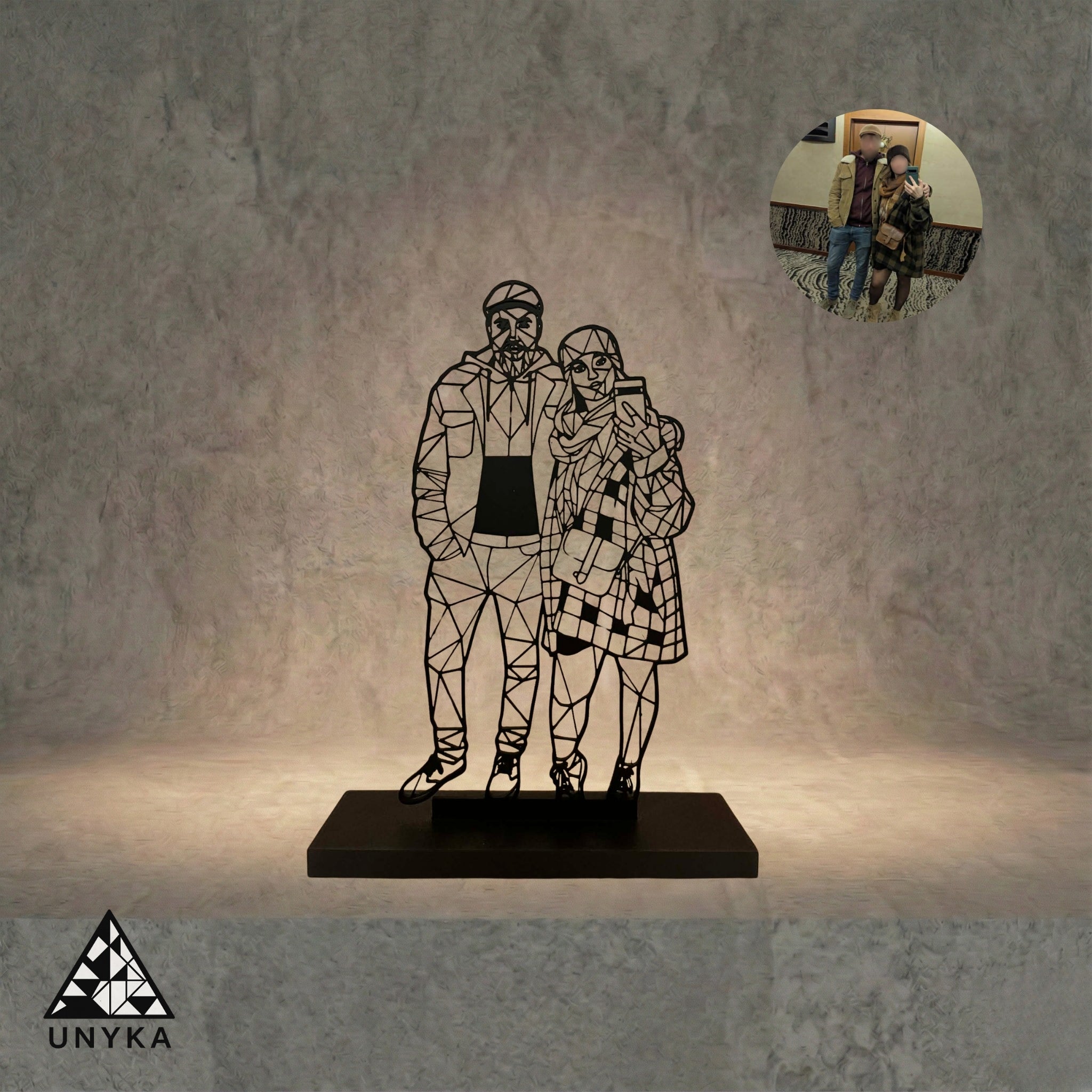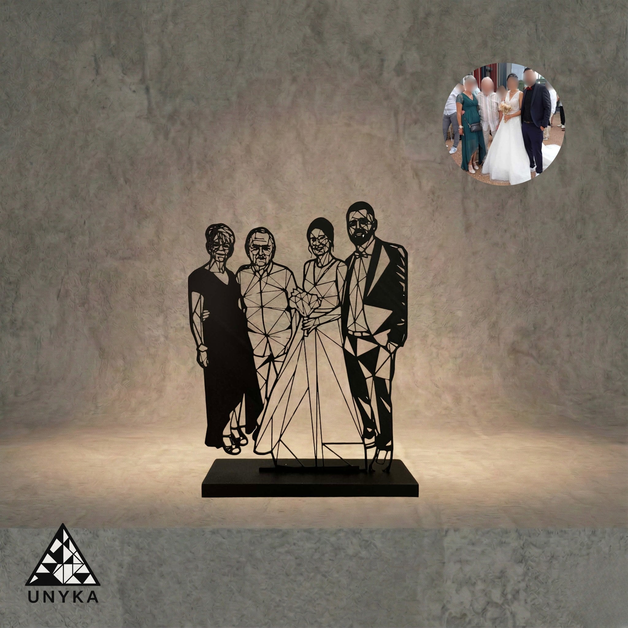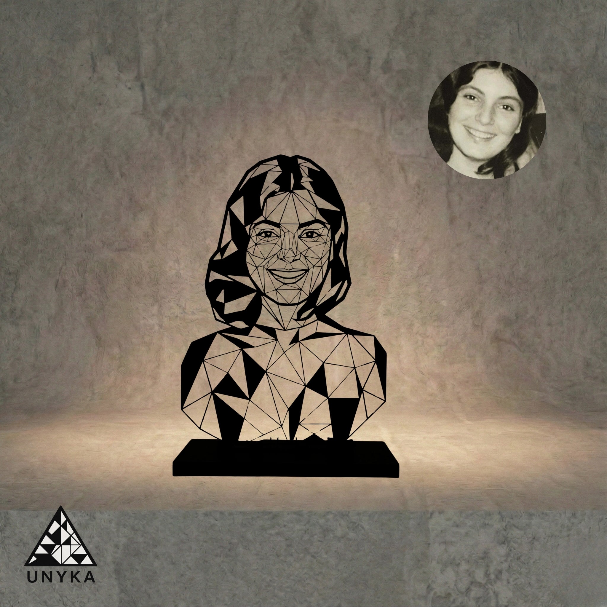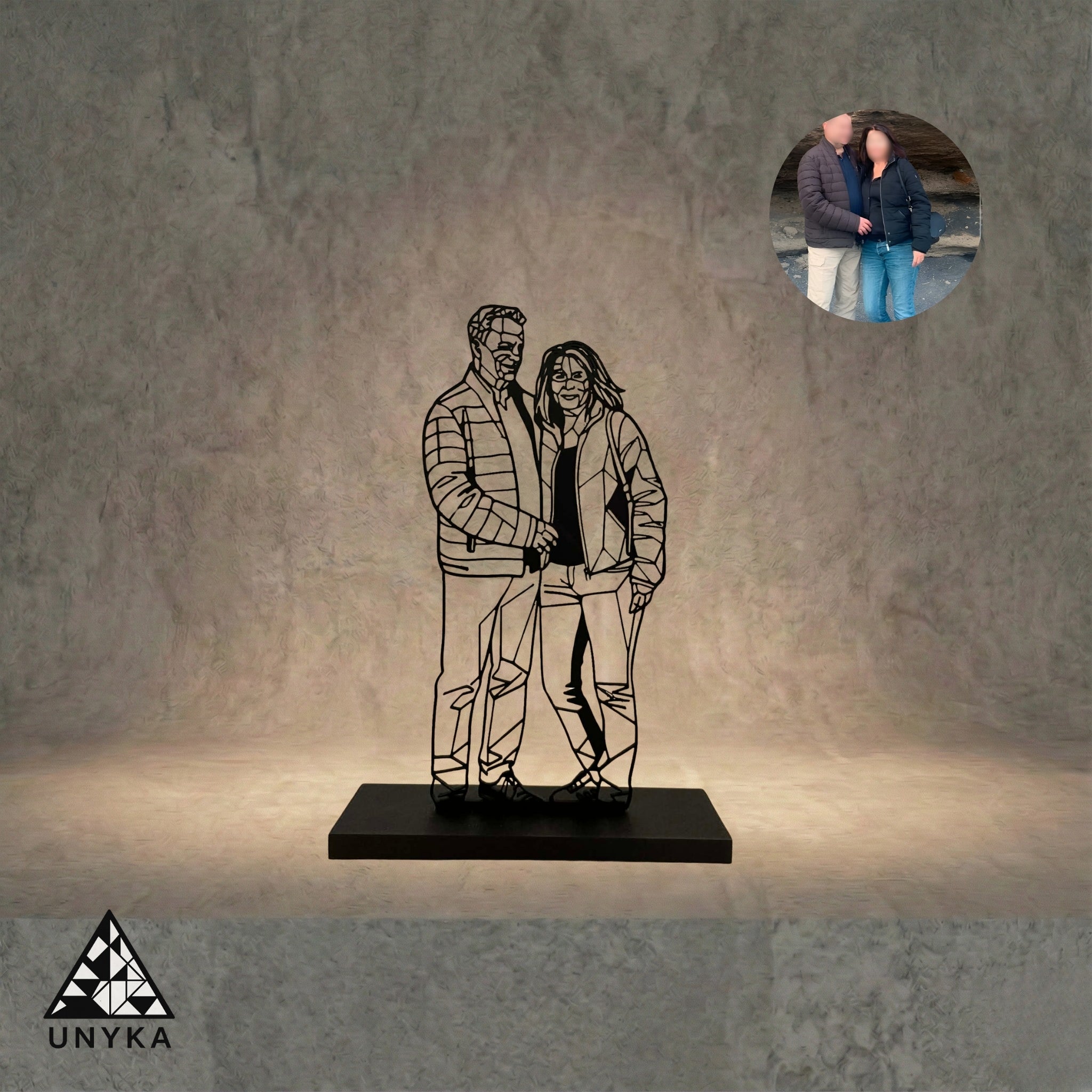 Pourquoi Unyka ? Parce que je cherchais une manière moderne et épurée d'immortaliser nos moments de vie. Le design géométrique apporte une dimension artistique et minimaliste qui s'intègre parfaitement dans chaque foyer. Ce n'est pas une simple copie de votre photo, c'est une réinterprétation unique, une pièce de décoration qui a une âme.